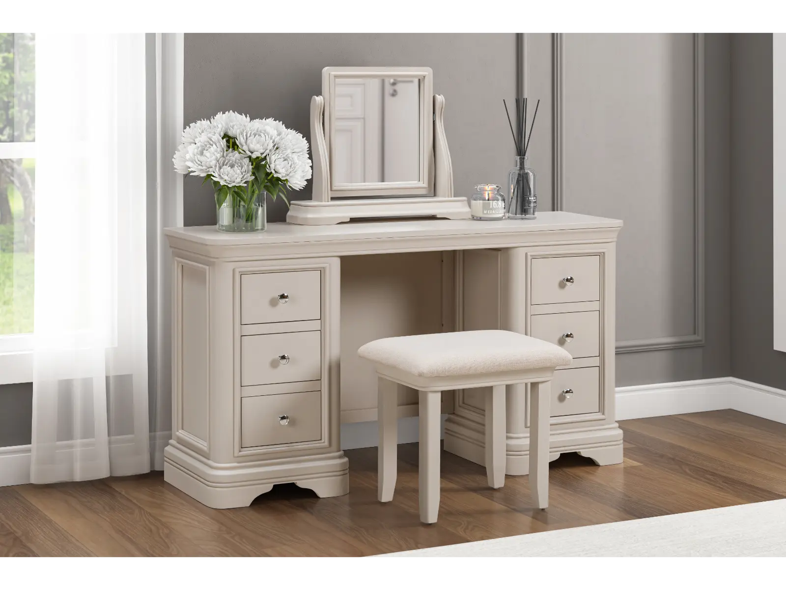 Our dressing tables and stools are the perfect addition to any bedroom. With their elegant and sleek designs, they offer both functionality and style. With plenty of storage space, our dressers allow you to keep all of your beauty essentials organized and within reach. The included stools are padded for comfort and upholstered in high-quality fabrics to finish the look. Whether you are looking for a classic or modern design, we have a selection that will suit any bedroom.