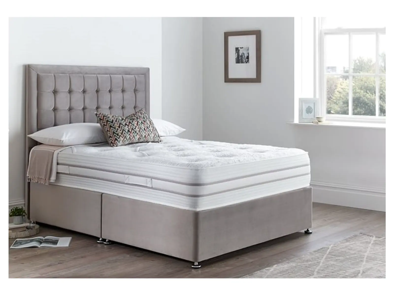 The Astrid 3000 boasts 3000 individually wrapped sumptious pocket springs which offer tailored support aligning to the contour of your body as you rest. The Astrid also boasts Flexi-Edge support for maximum edge-to-edge support creating a no roll-off feel. This mattress never needs turning over but we do recommend a seasonal rotation. The Astrid is hand tufted to increase tension in the mattress maximising its lifespan.