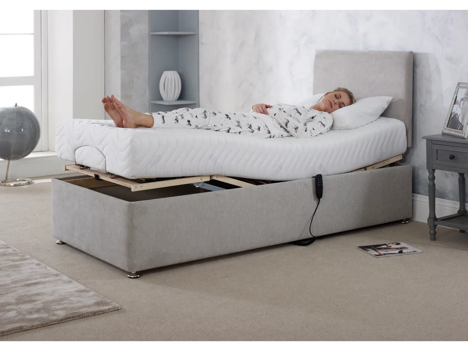The Beau 1000 adjustable provides exceptional body support, contouring to your natural shape and reducing motion transfer for an undisturbed night’s sleep. Traditional slatted base as standard or can be upgraded to a “Lifestyle” Solid Base . Choice of Fabrics and colours and Matching Headboards to complete the look.