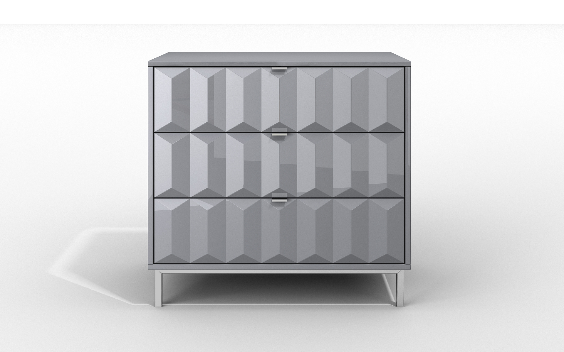 The Carlton Bedroom Collection is an assembled range of bedroom furniture which is designed to compliment any Style. The Cube effect furniture is available in Grey or white Gloss and features items such as Bedside Cabinets, 3 Drawer Chest and 6 Drawer Chest. The Carlton Bedroom Range is made from a solid MDF carcass & durable scratch resistant vinyl. The range consists of High-quality, long-lasting drawer runners & is finished off with a smart, modern design with chrome effect drawer handles & chunky Chrome style legs. The furniture is fully assembled and is in stock ready to take away.