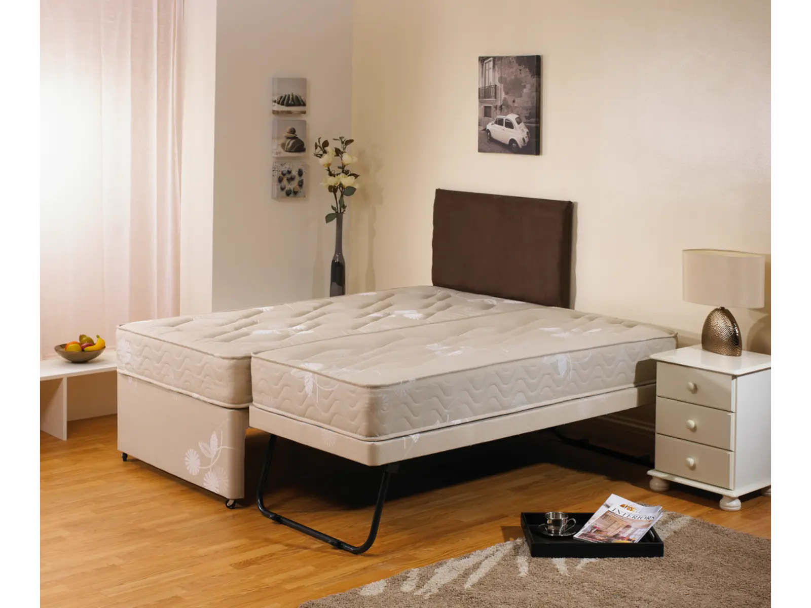 Designed with convenience in mind, the underbed neatly tucks away beneath the main frame and can be effortlessly pulled out and raised to the same height, creating a seamless and supportive sleeping surface. This makes it ideal for guest rooms, spare rooms, or compact living spaces where maximising space is essential.