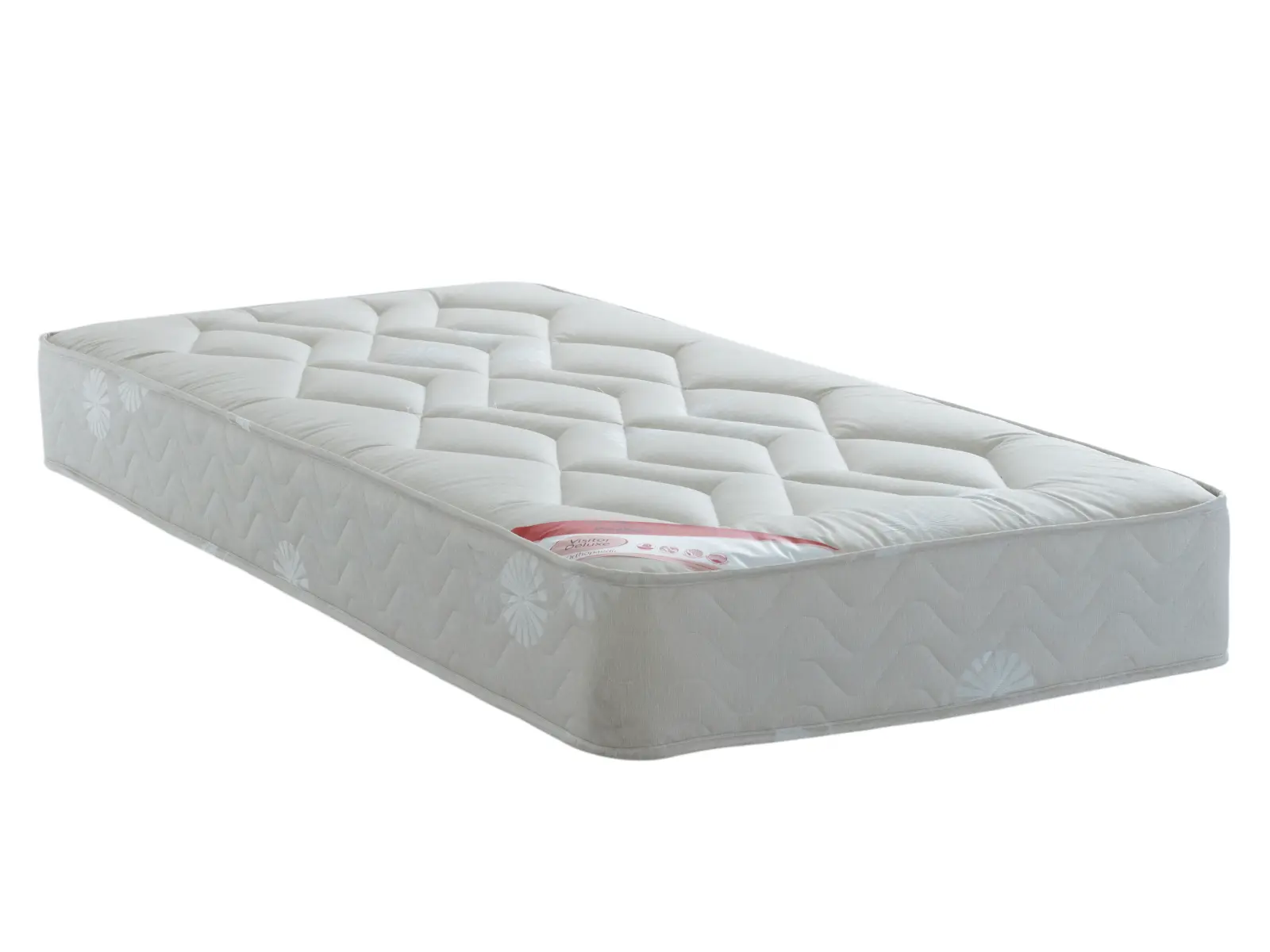 The Visitor Deluxe model typically features a durable open coil spring system, offering consistent support with a comfortable medium feel. Upholstered in a quality damask fabric with micro-quilted finish, the mattresses provide both durability and a soft, comfortable sleeping experience. Similar Dura Beds guest beds use a 13.5 gauge spring unit and medium comfort rating, making them suitable for a wide range of sleepers.