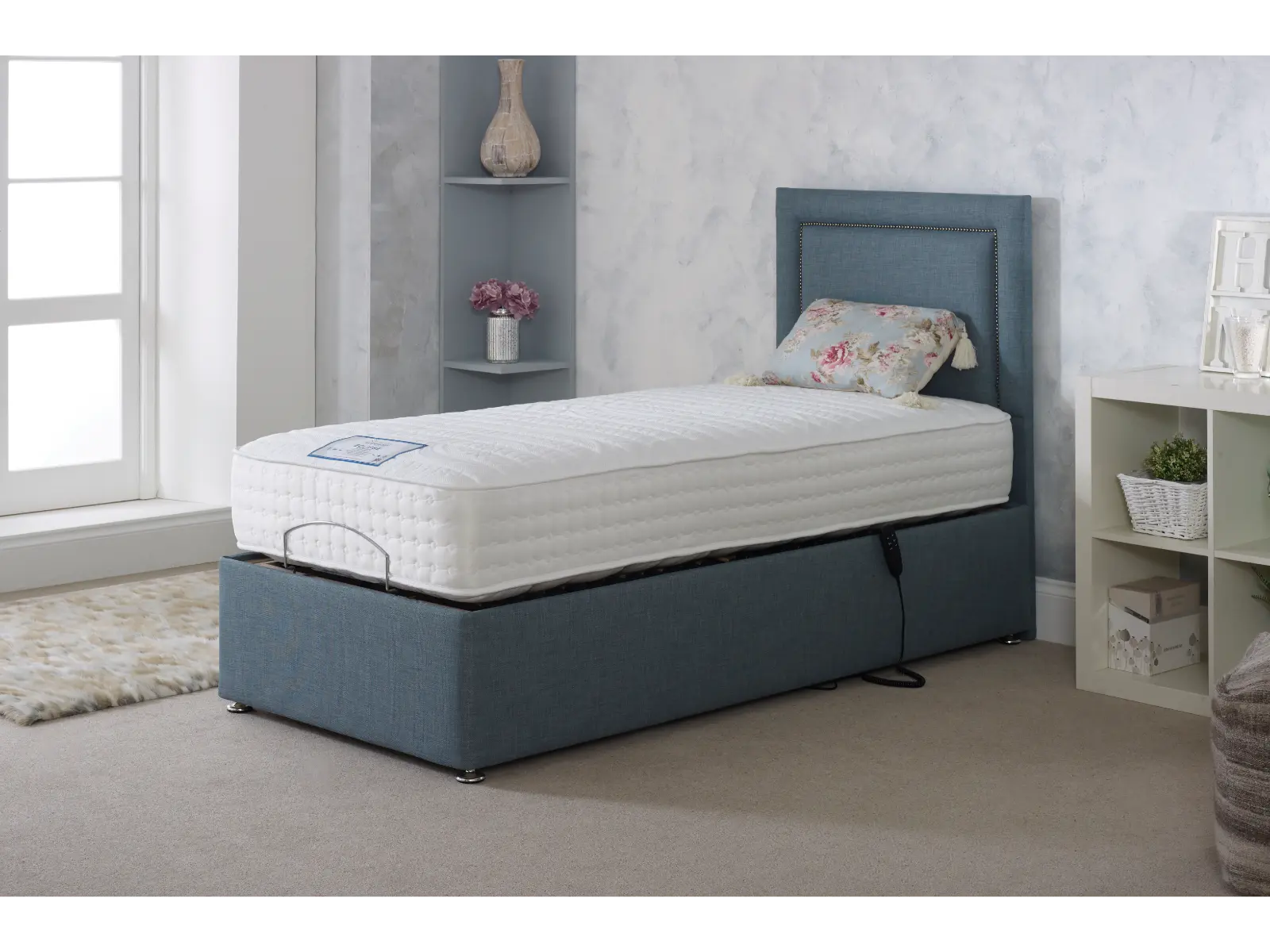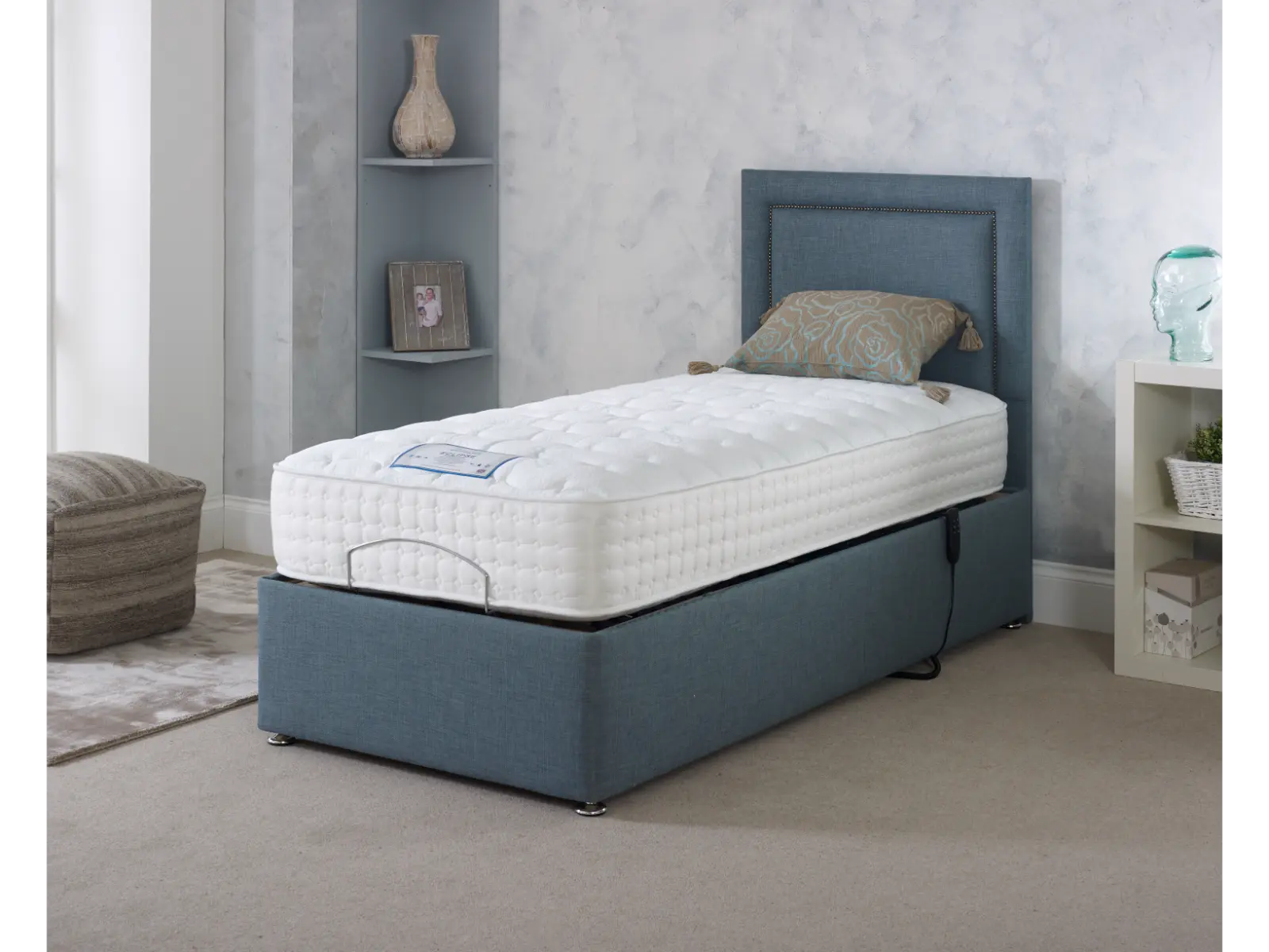 The Eclipse 1500 Individually pocket sprung Adjustable Divan Set contours naturally for maximum Comfort and Support. Seasonal turn mattress with winter and Summer Sides. 10″ Deep quilted mattress with Medium/firm comfort rating. Large choice of colours and fabrics with a range of strutted headboards to complete the look.