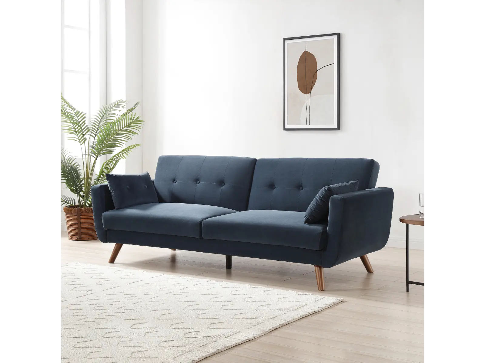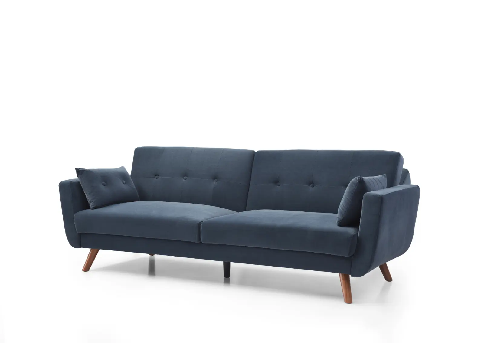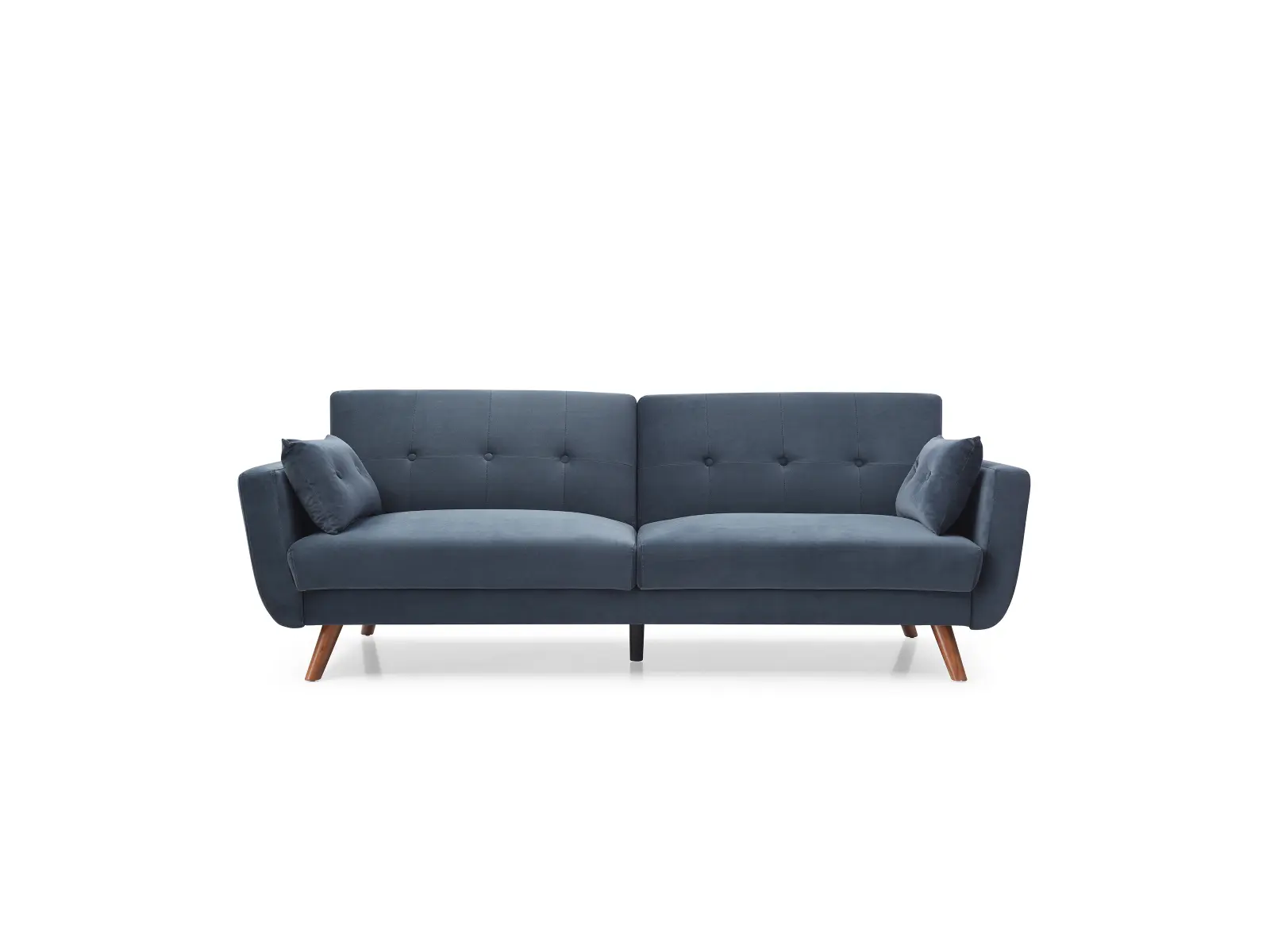 Embrace the comfortable cushioning of this sofa bed and mattress. With its Buttoned cushioned back, this sofa gives your body all the support you need to sit and relax for hours. The combination of curved armrests and slanted legs work together to provide a unique rounded look that stands out. The Athena Ink velvet upholstery adds another element of elegance making this a perfect statement piece for any living space.