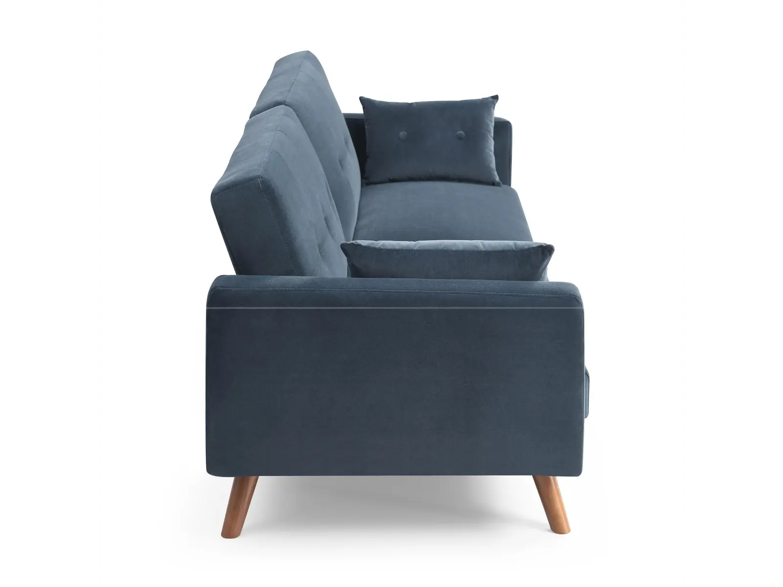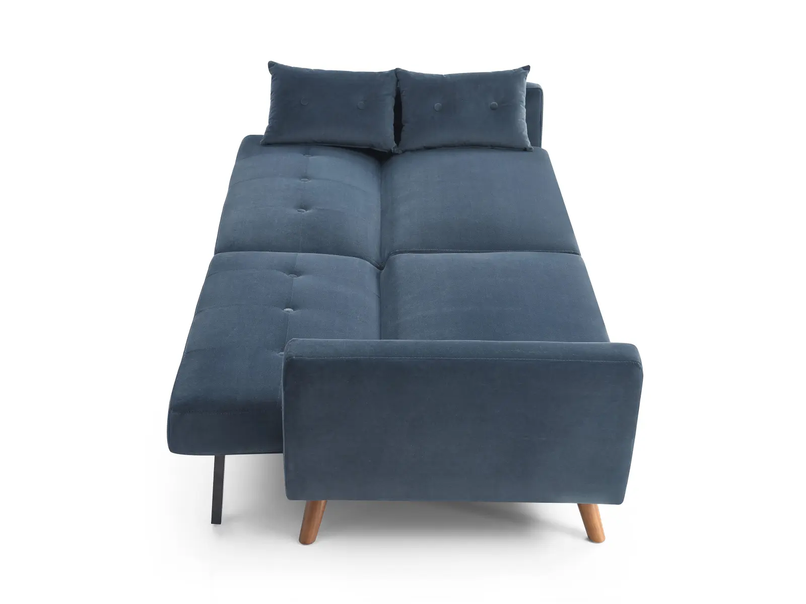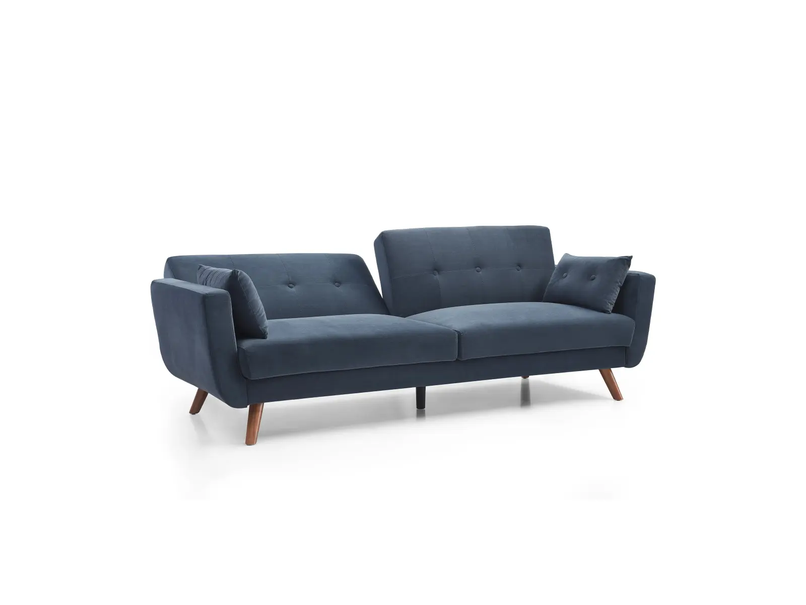 Embrace the comfortable cushioning of this sofa bed and mattress. With its Buttoned cushioned back, this sofa gives your body all the support you need to sit and relax for hours. The combination of curved armrests and slanted legs work together to provide a unique rounded look that stands out. The Athena Ink velvet upholstery adds another element of elegance making this a perfect statement piece for any living space.